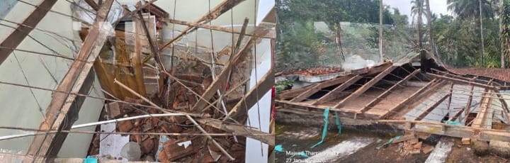 Thamarassery, കനത്ത മഴ; വീടിന്റെ മേൽക്കൂര തകർന്നു വീണു